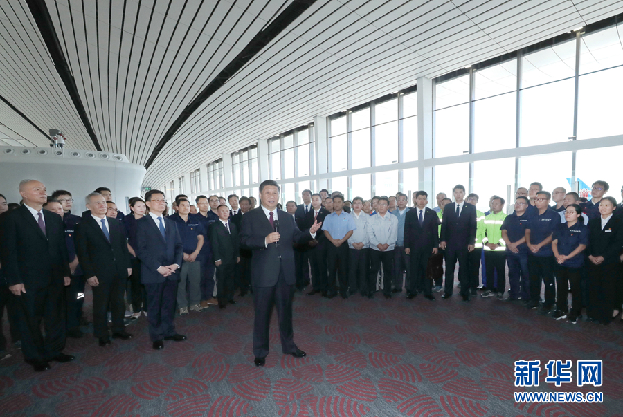 習近平強調(diào),大興國際機場能夠在不到5年的時間里就完成預定的建設任務,順利投入運營,充分展現(xiàn)了中國工程建筑的雄厚實力,充分體現(xiàn)了中國精神和中國力量,充分體現(xiàn)了中國共產(chǎn)黨領導和我國社會主義制度能夠集中力量辦大事的政治優(yōu)勢。新中國70年何等輝煌!中國共產(chǎn)黨領導中國人民實現(xiàn)了一個又一個“不可能”,創(chuàng)造了一個又一個難以置信的奇跡。奇跡是干出來的,社會主義是干出來的。中國共產(chǎn)黨和中國人民有雄心、有自信繼續(xù)奮斗,朝著實現(xiàn)“兩個一百年”奮斗目標、實現(xiàn)中華民族偉大復興的中國夢奮勇前進。實踐充分證明,中國人民一定能,中國一定行。