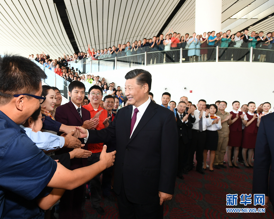 投運儀式結束后,習近平來到機場國際出發(fā)大廳,看望參與機場建設和運營的工作人員代表。習近平同大家一一握手,代表黨中央向大家并向所有參與機場規(guī)劃、建設、運營的同志們表示熱烈的祝賀和節(jié)日的問候。習近平指出,大興國際機場建設標準高、建設工期緊、施工難度大,全體建設者辛勤勞動、共同努力,高質(zhì)量地完成了任務,把大興國際機場打造成為精品工程、樣板工程、平安工程、廉潔工程,向黨和人民交上了一份令人滿意的答卷!