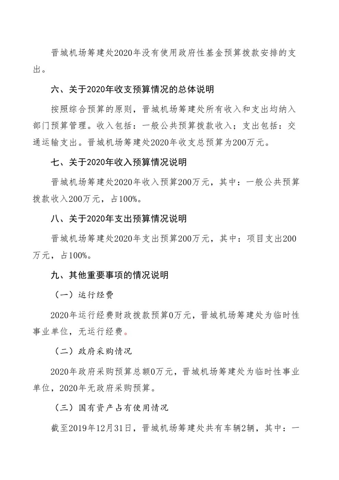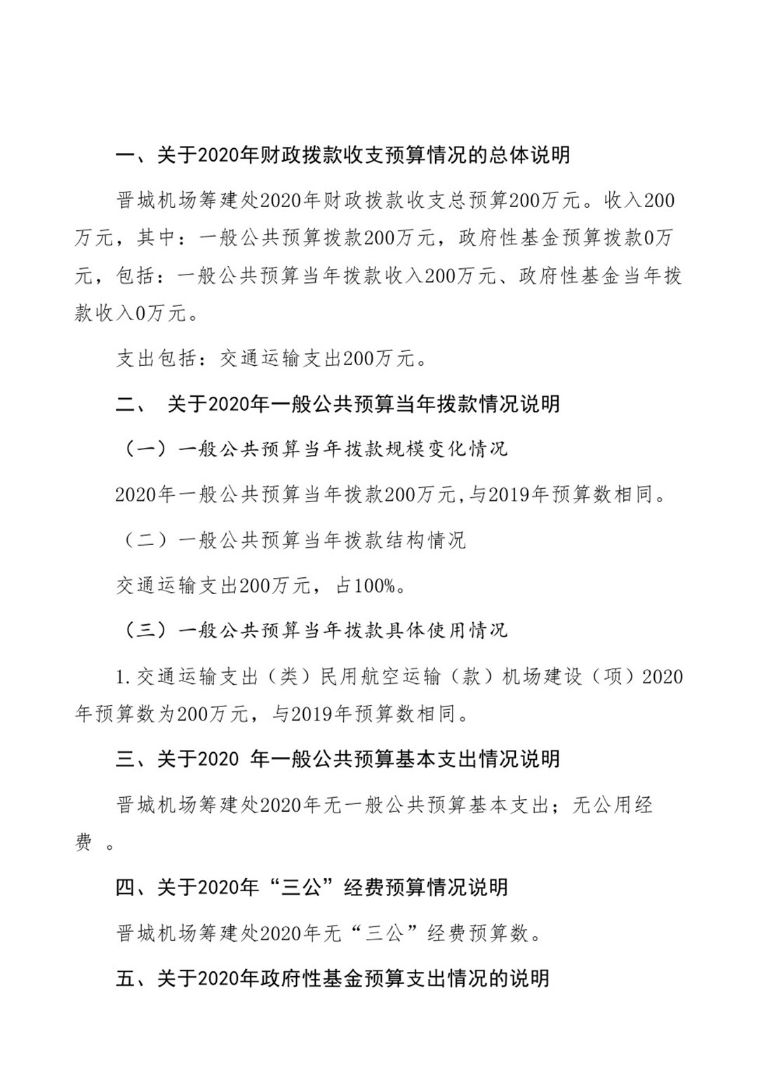 晉城機(jī)場(chǎng)籌建處2020年度預(yù)算公開(kāi)