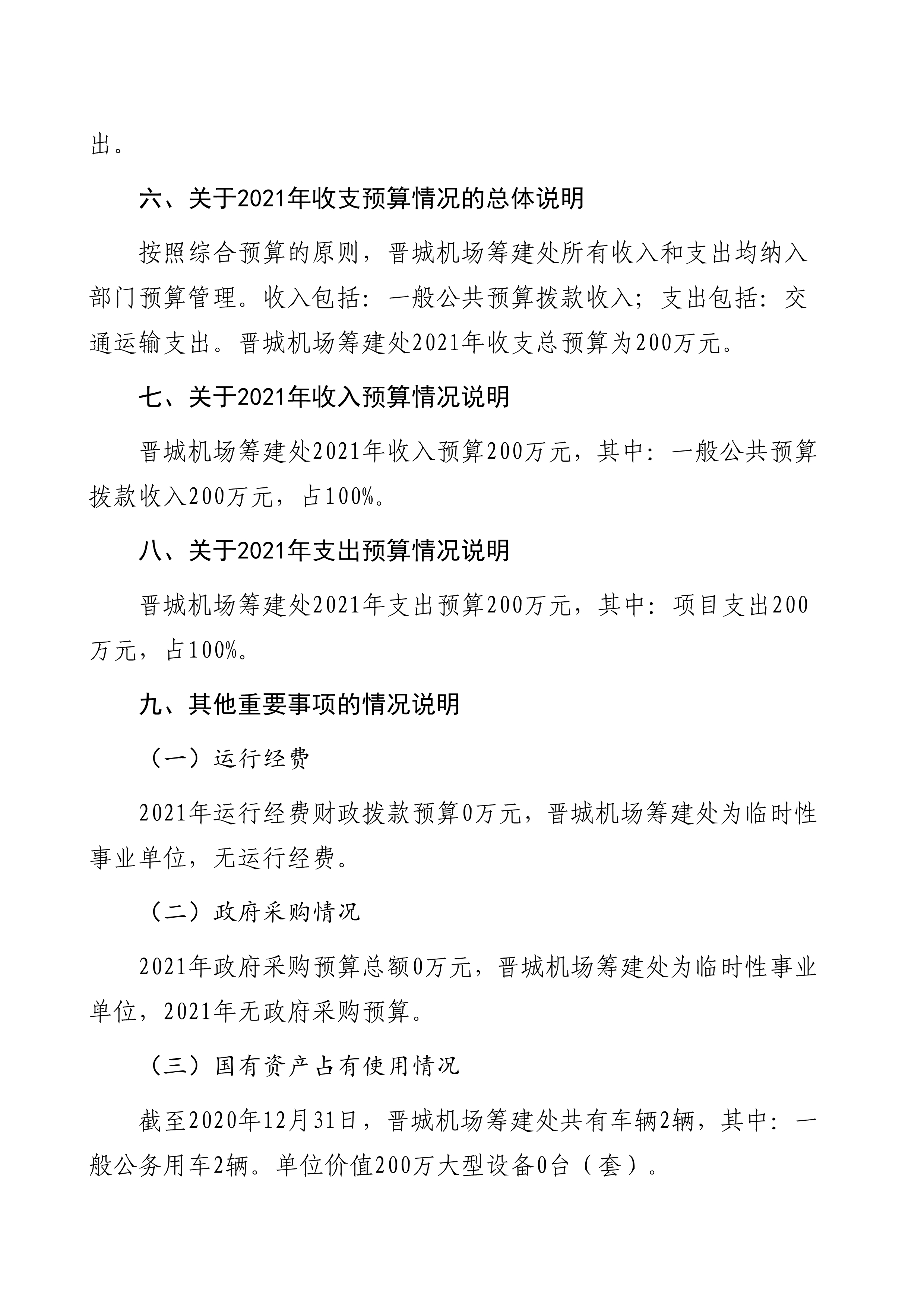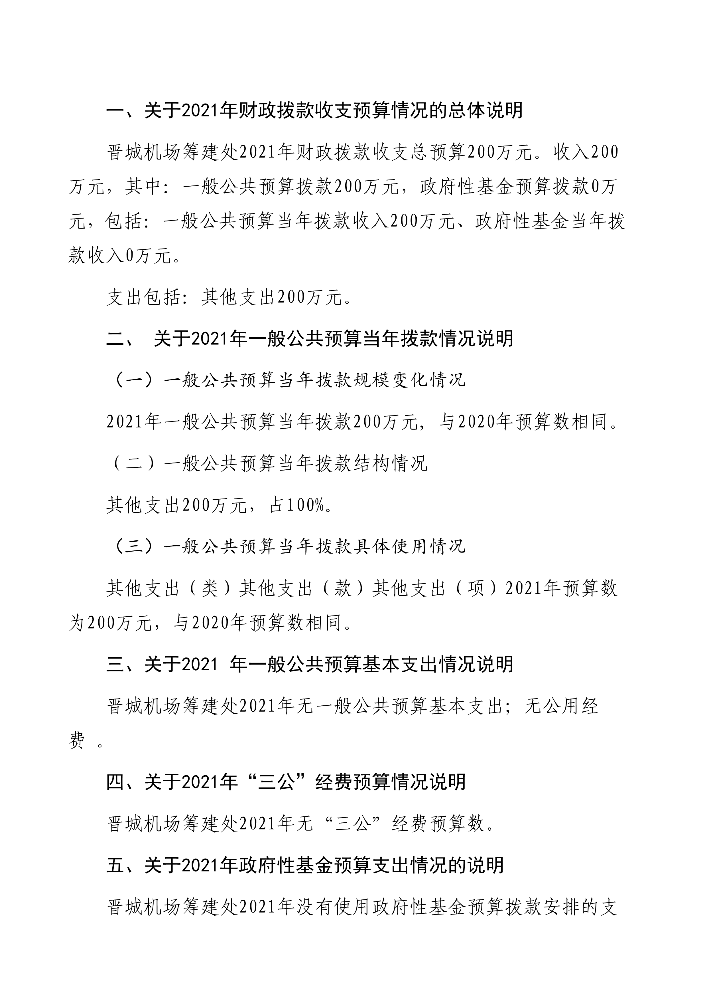 晉城機場籌建處2021年度預算公開