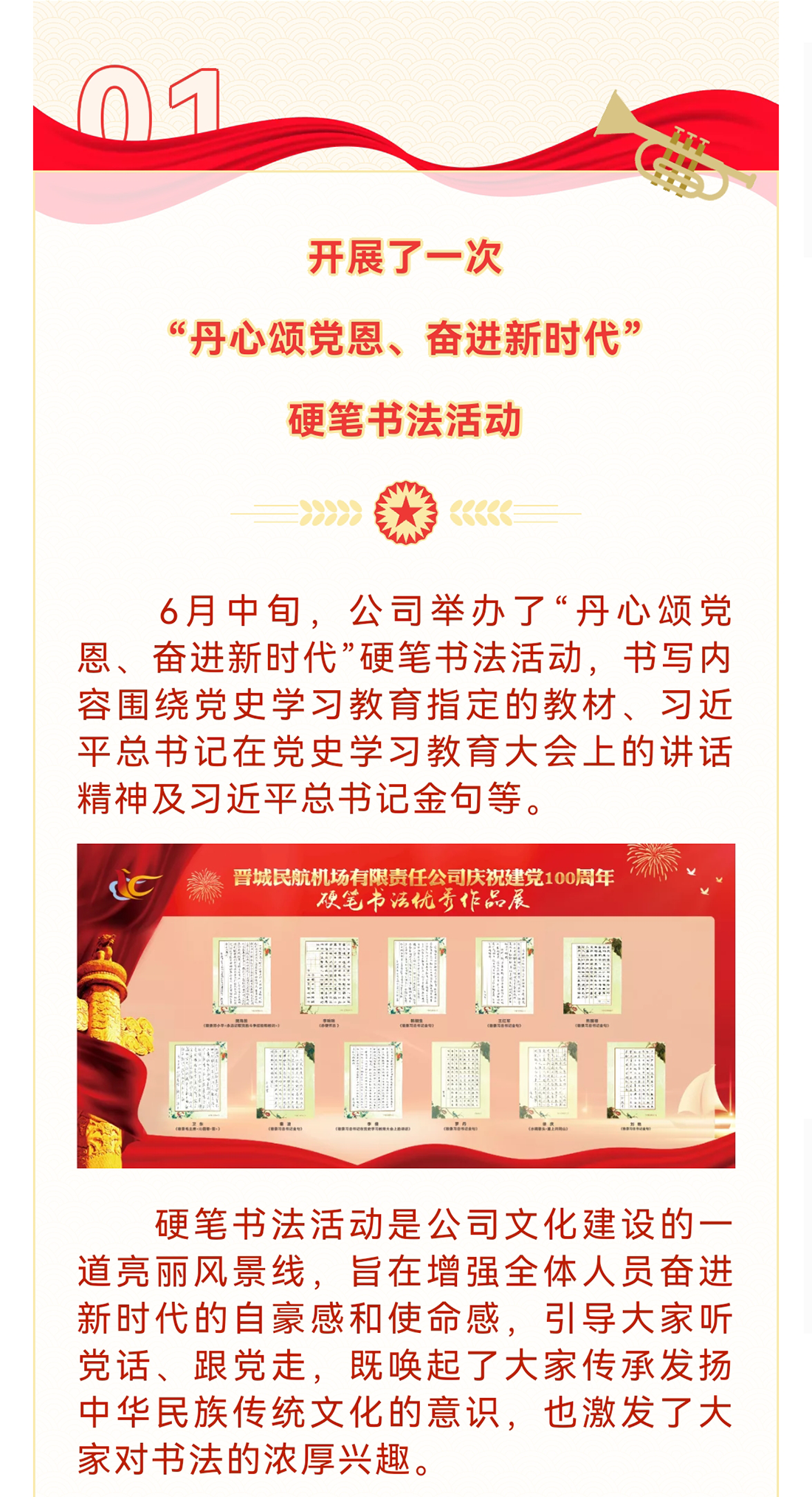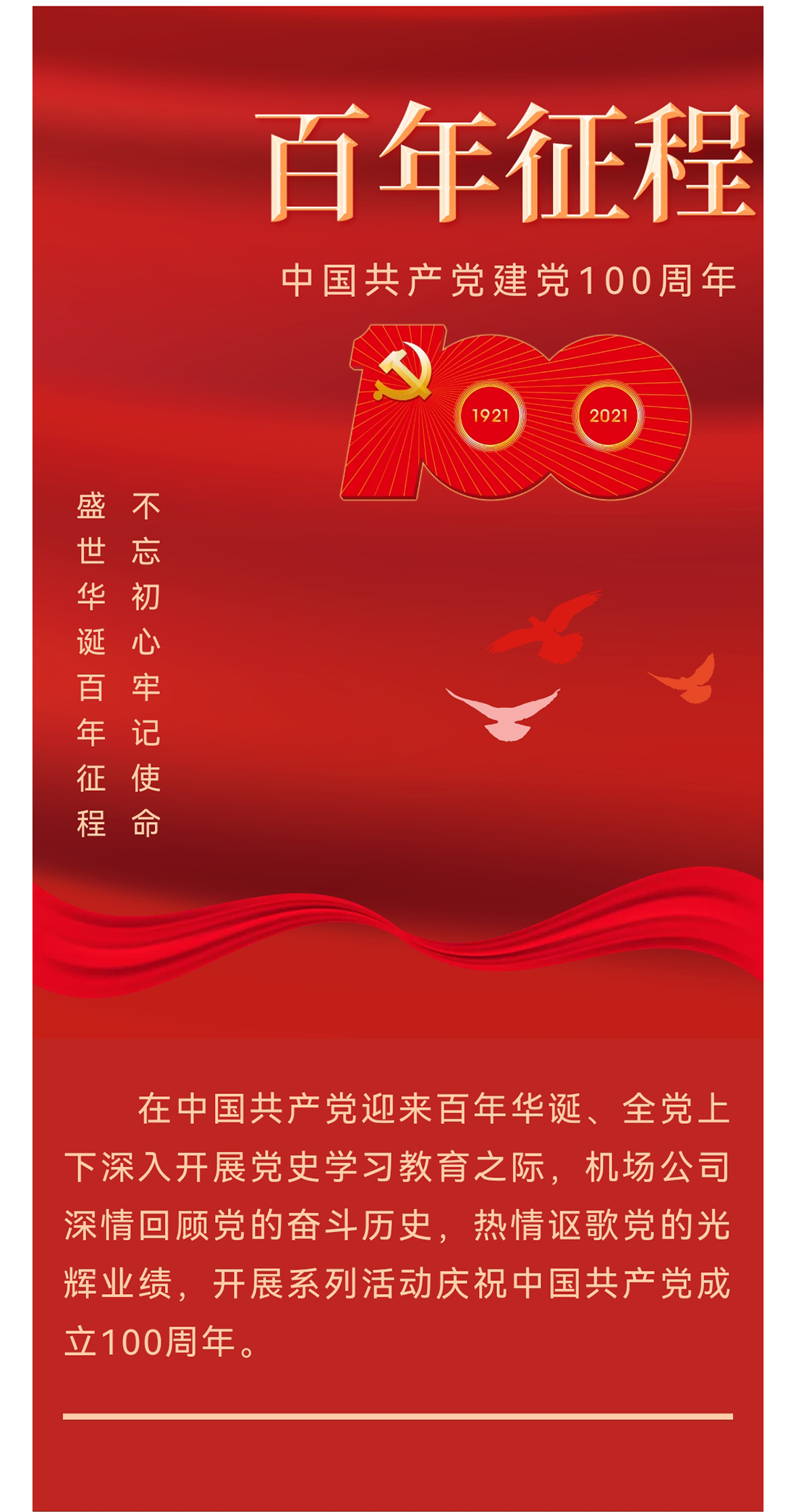 在中國共產(chǎn)黨迎來百年華誕、全黨上下深入開展黨史學(xué)習(xí)教育之際,機(jī)場公司深情回顧黨的奮斗歷史,熱情謳歌黨的光輝業(yè)績,開展系列活動(dòng)慶祝中國共產(chǎn)黨成立100周年。