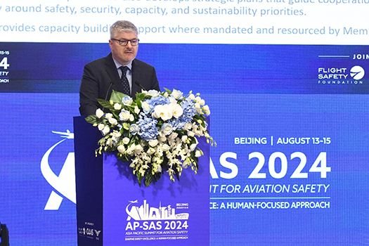 宋志勇圍繞“生命至上、安全第一,以人為本構建更高水平民航安全”作了主旨發(fā)言。他表示,一直以來,中國民航始終致力于積極為全球民航安全發(fā)展貢獻力量,治理體系和治理能力的現(xiàn)代化水平不斷提高。他指出,只有牢固樹立安全發(fā)展理念、不斷強化人的安全意識,加強專業(yè)隊伍建設、不斷強化人的資質能力,提升依法治理水平、不斷規(guī)范人的安全行為,持續(xù)推進科技興安、不斷提高人的工作效能,才能更好塑造民航安全;只有加強國際交流合作、分享安全經(jīng)驗和成果,才能更好塑造共同安全。他強調,全球民航安全發(fā)展仍然面臨諸多風險挑戰(zhàn),希望亞太地區(qū)各國民航塑造更為開放兼容、積極向上的安全文化,加強人才培養(yǎng)和科技支撐,推動國際和地區(qū)間的合作交流,共同推動亞太地區(qū)乃至全球民航業(yè)實現(xiàn)高水平安全和高質量發(fā)展。